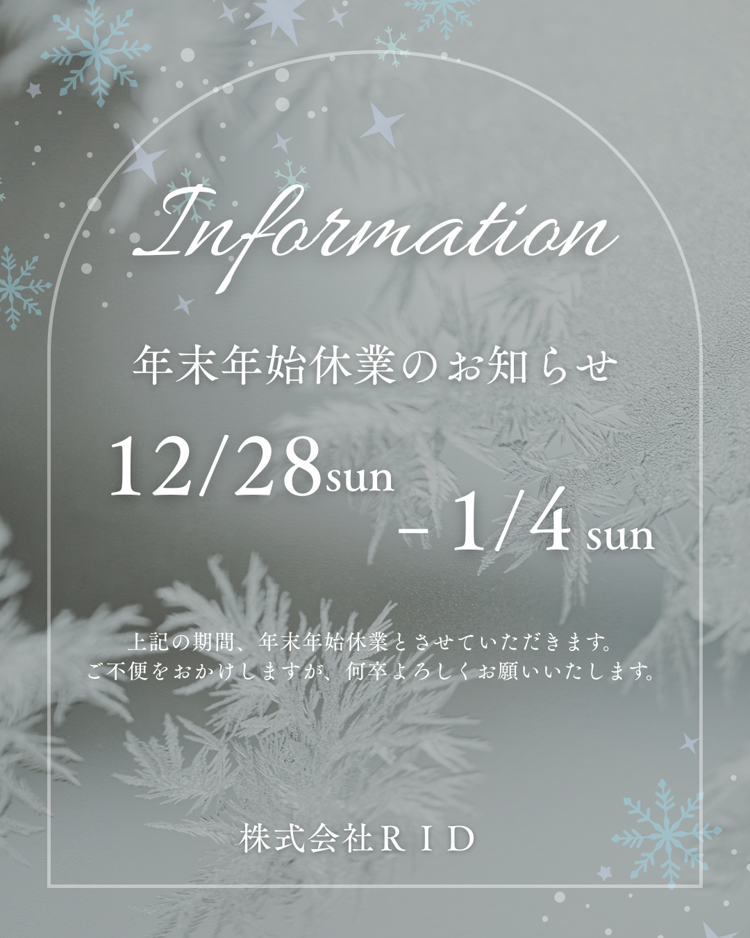 - 年末年始休業のお知らせ
